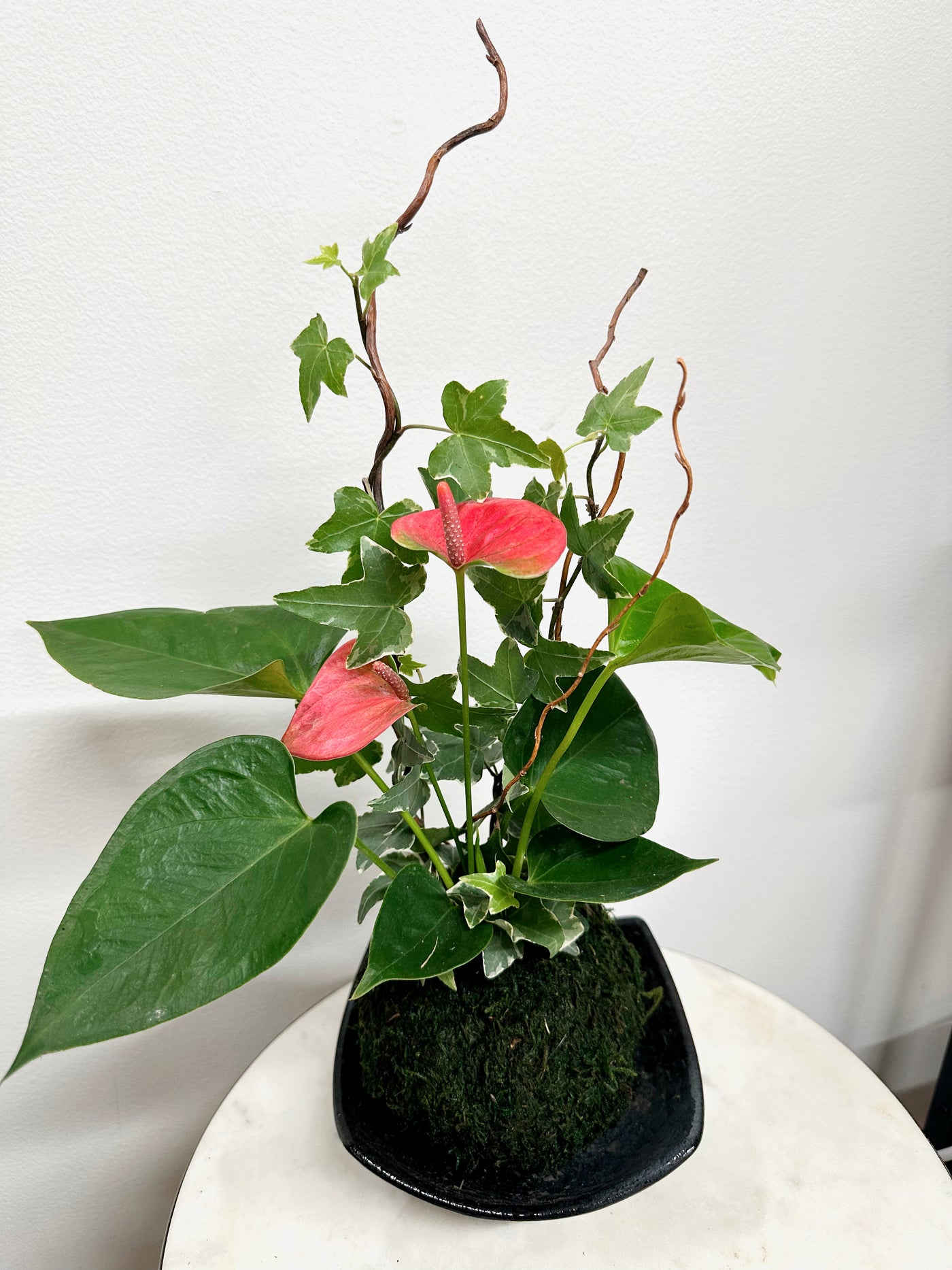 In general, most tropical plants prefer bright, indirect light — near a window with filtered sun is ideal. Avoid harsh, direct afternoon sun, which can dry out the moss too quickly.
